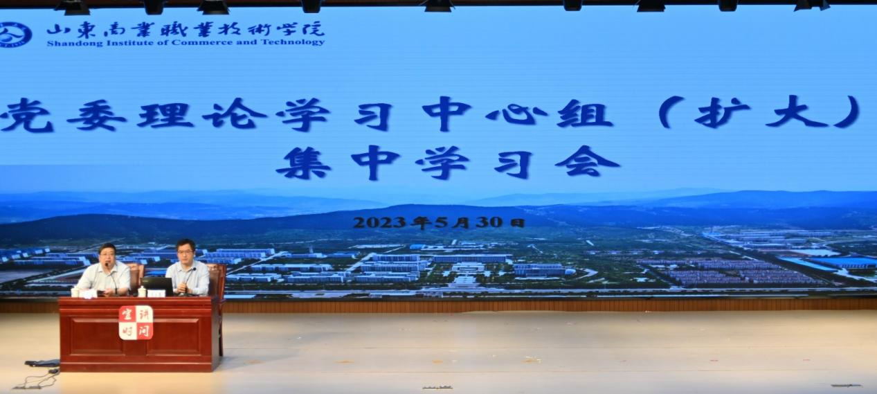 5月30日,山东商院党委书记张志东主持召开2023年第5次党委理论学习中心组(扩大)集体学习会,围绕“把党的伟大自我革命进行到底”主题,深入学习习近平总书记关于党的自我革命、党的建设的重要论述及《论党的自我革命》等内容。