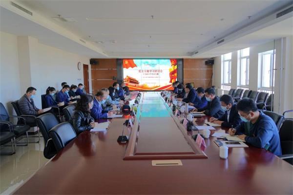 会上,全员学习全会公报,观看党的十九届六中全会精神新闻发布会直播。