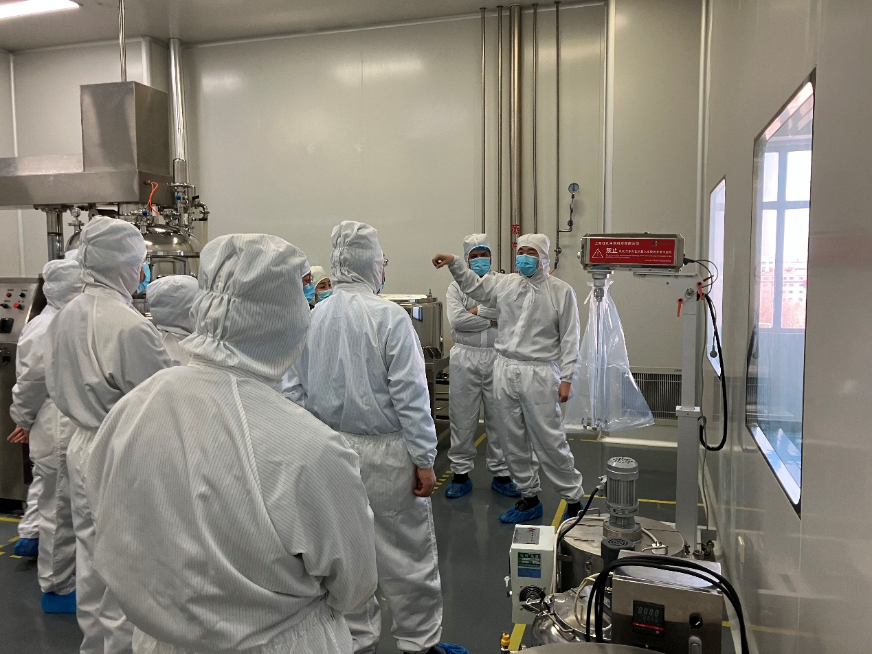 活动中,双方走进生产一线,开展了沉浸式学习交流。在外用制剂和口服制剂生产车间内,各车间主任结合生产实际,详细讲解了各个工段设备的工作原理、操作规范以及维护要点,研发人员一边认真聆听,一边结合自身在研发中遇到的难题,与技术人员展开深入讨论。