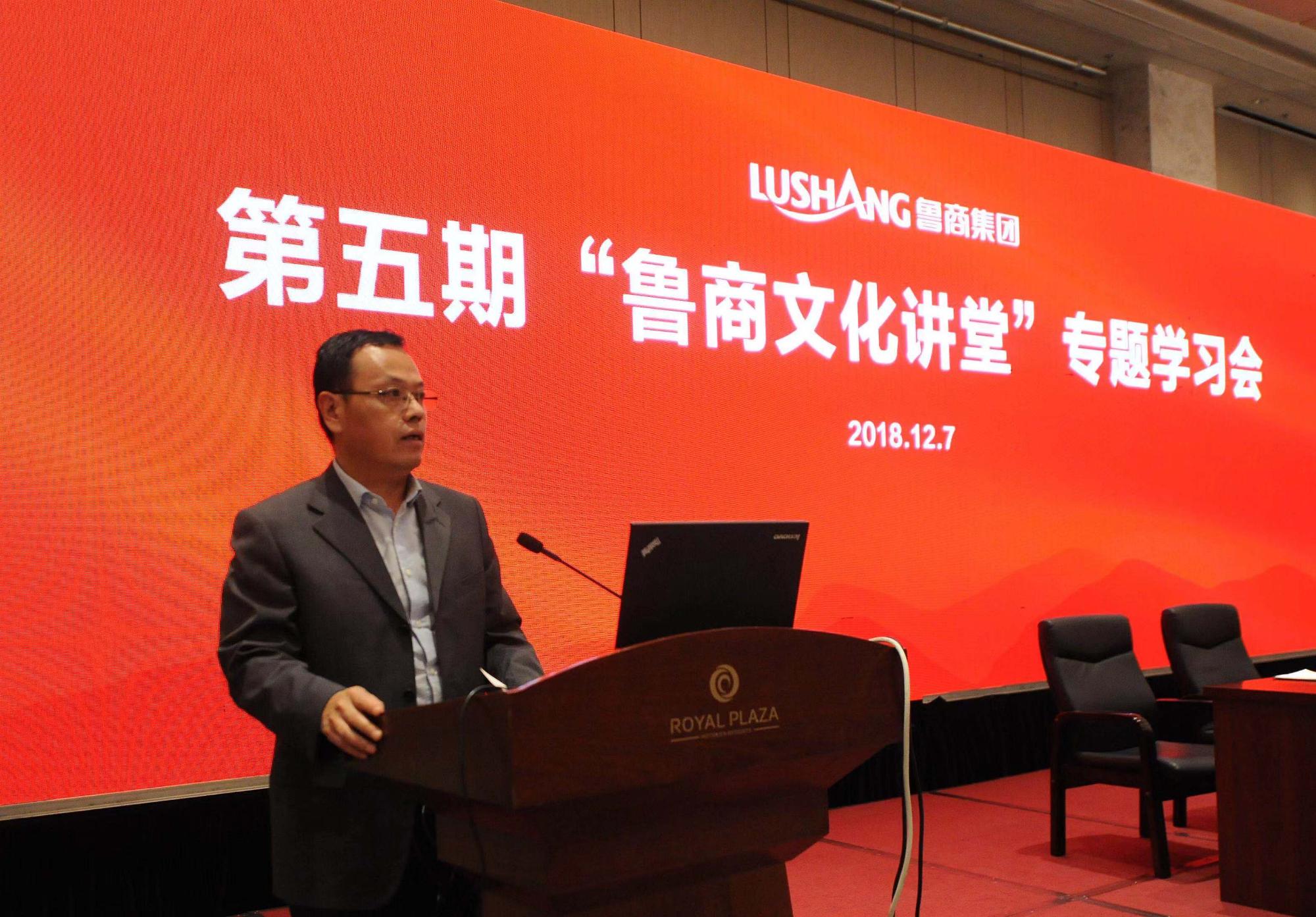 12月7日下午,鲁商集团举行“鲁商文化讲堂”专题学习会,邀请解放军报社原高级编辑卜金宝做了题为《 中华民族英雄史观——与信仰对话 》的专题报告。鲁商集团党委副书记刘守亮主持会议。