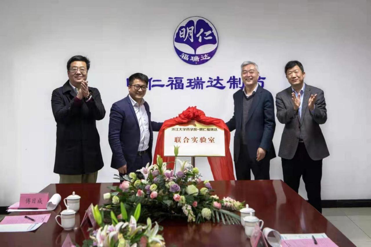 12月13日,浙江大学药学院——明仁福瑞达联合实验室揭牌仪式在济南举行。省商业集团有限公司(简称鲁商集团)教育科技管理部部长梁乃计、福瑞达医药集团总经理贾庆文、浙江大学药学院院长助理刘雪松、浙江大学现代中药研究所党支部书记栾连军共同为联合实验室揭牌。