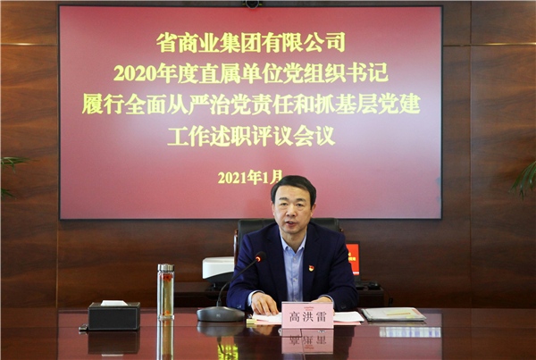 1月22日,省商业集团有限公司(简称鲁商集团)召开2020年度直属单位党组织书记履行全面从严治党责任和抓基层党建工作述职评议会。鲁商集团党委书记、董事长兼国欣文旅董事长高洪雷主持会议并讲话,省国资委办公室副主任杨斌专程到会指导。