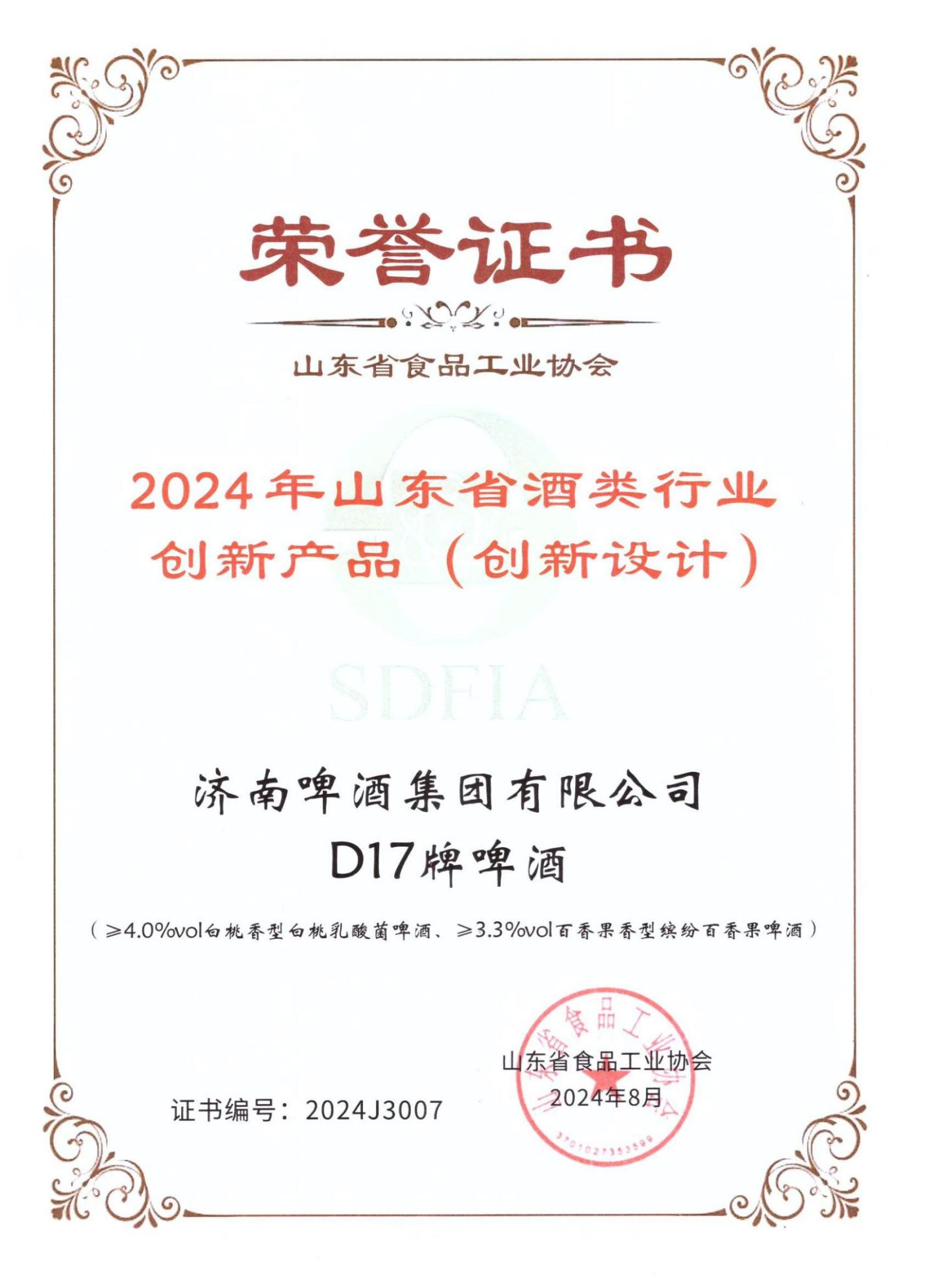 喜报!鲁商投资旗下D17精酿啤酒荣获山东省酒类行业“感官质量5星级产品”和“创新产品”奖