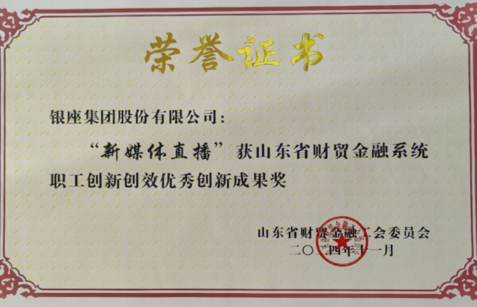 为培育发展新质生产力,扛牢“走在前、挑大梁”的使命担当,银座集团不断加大科技投入,完善人才培养发展机制,在省财贸金融工会开展的全员创新竞赛活动中,银座集团“新媒体直播”荣获山东省财贸金融系统职工创新创效优秀创新成果奖。