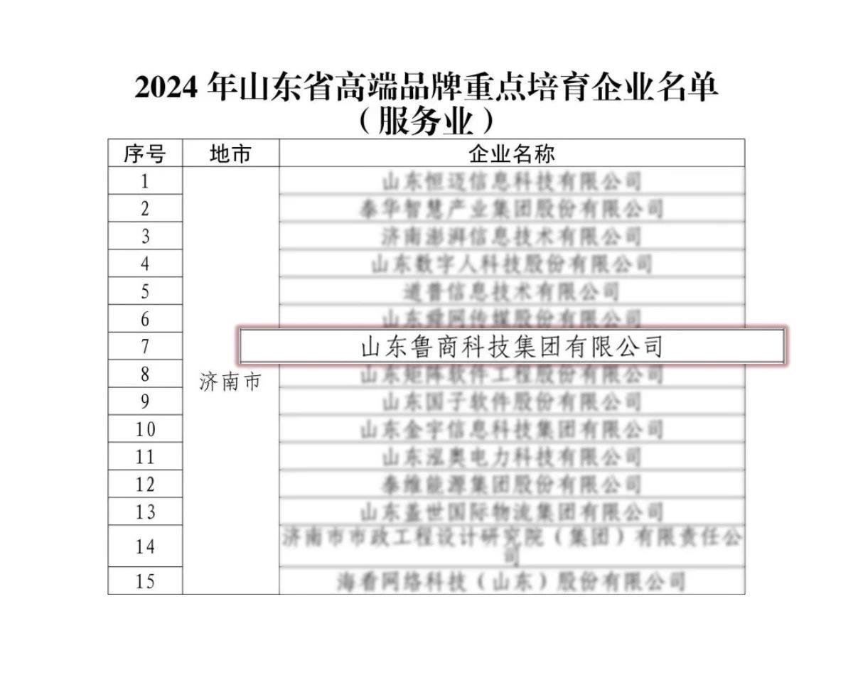 近期,山东省市场监督管理局发布2024年山东省高端品牌重点培育企业名单,鲁商科技成功入选。