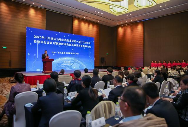 12 月 22 日,由青岛酒店学院牵头成立的山东现代酒店业职业教育集团举行一届三次理事会暨数字化变革与旅游职业教育高质量发展高峰论坛,78家职教集团成员单位的140余位嘉宾莅临参会。学院党委书记李达,学院院长、山东酒店业职业教育集团理事长姜玉鹏,中国旅游教育协会教育分会秘书长刘莉莉出席会议并致辞,学院党委副书记王鑫主持会议。