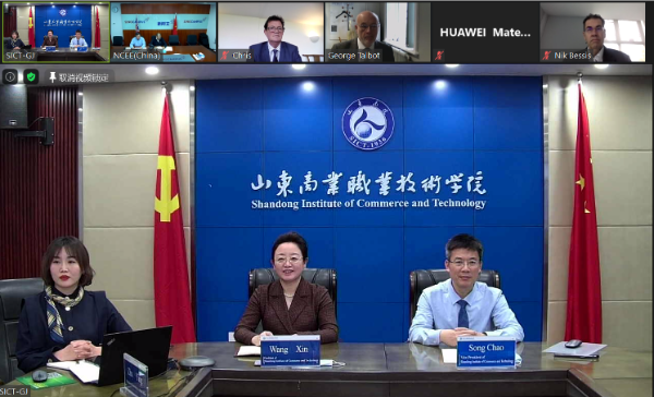 4月22日,山东商院与英国知山大学以线上方式签署合作备忘录。知山大学副校长乔治•泰尔伯特,山东商院党委副书记、院长王鑫,党委副书记宋超,国际交流部部长朱颖,英国国家创新创业教育中心中国办事处相关负责人参加仪式。
