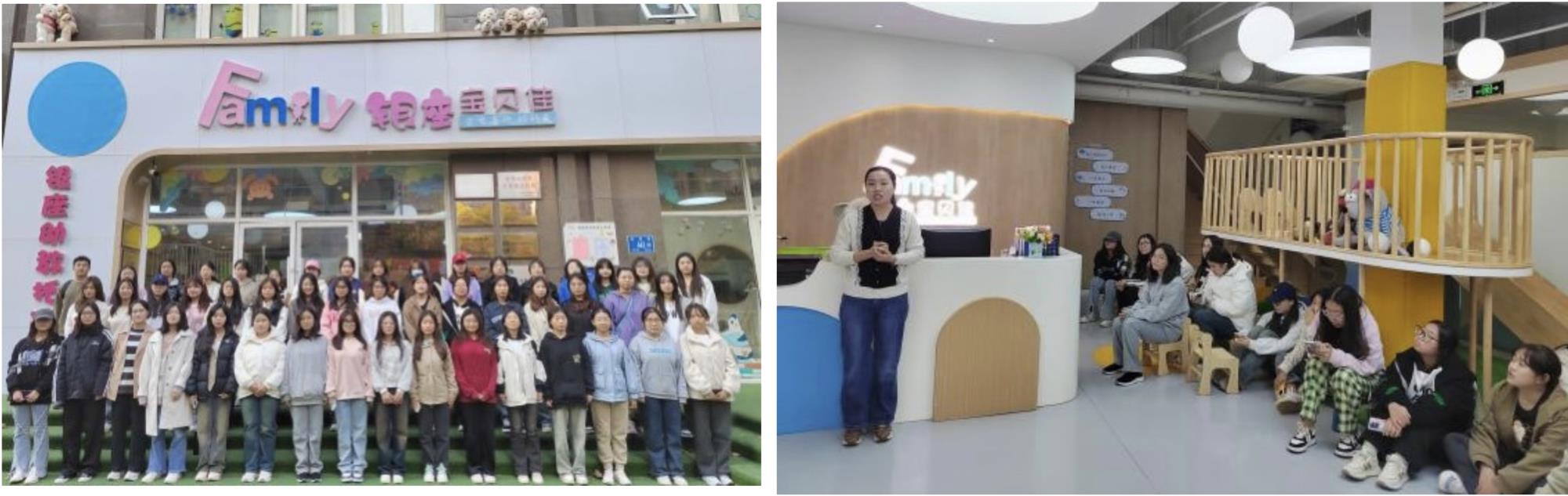 在银座宝贝佳东城逸家托育园,师生实地参观园区教学环境、卫生设施、保育设施等,与管理人员就托育机构的运营管理、人才培养、课程建设、师资队伍建设等方面进行了详细交流。