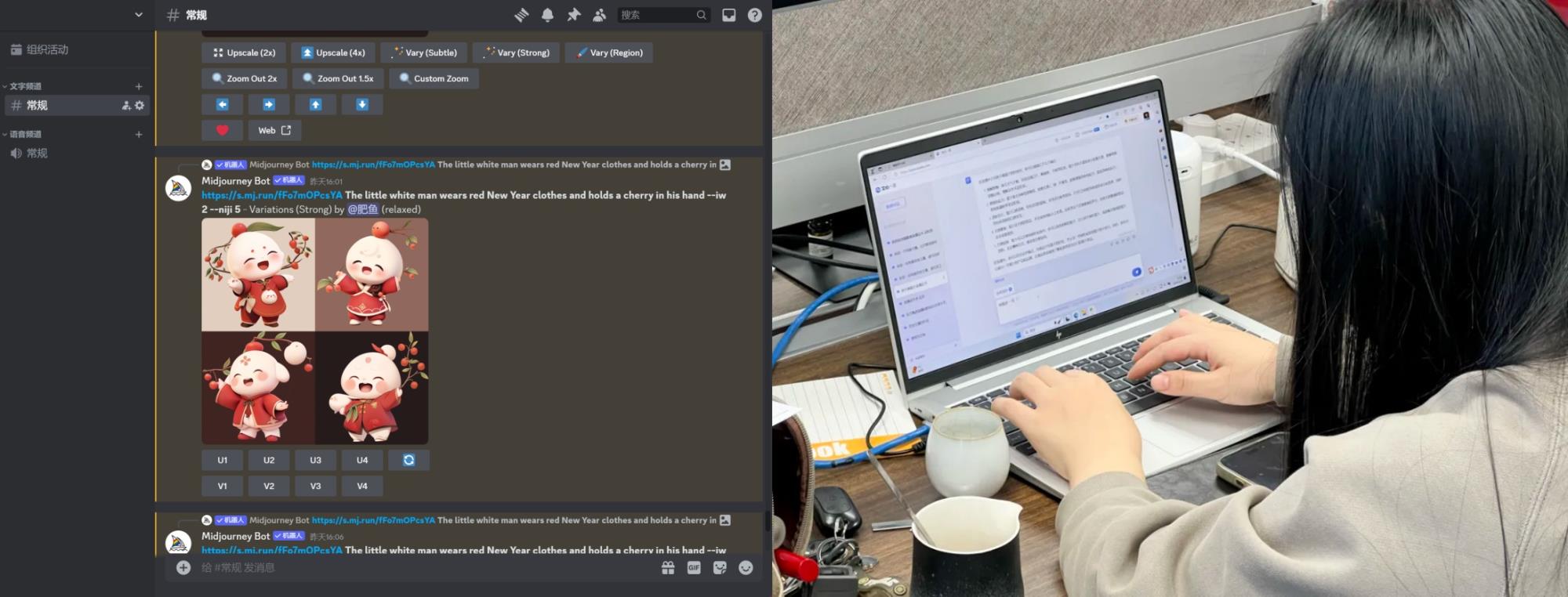 生动活泼的“豆豆”是鲁商通标志性IP形象,以往的手工绘画形式创作效率低、修改复杂,为服务营销节点,工作人员需提前两周进行绘制。为解决创作痛点,提升经营效率,鲁商通自行探索AI应用,让AI文生图技术成为设计师的“好帮手”。设计人员仅需提供基础形象后输入关键词,经过几次微调,一张张各具特色的“豆豆”形象便可自动生成,极大缩短了创作时间,快速丰富了使用场景。