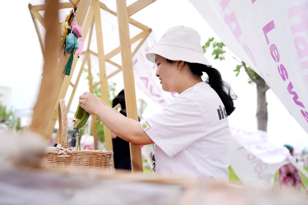 在伊帕尔汗薰衣草文化产业园的活动现场,手作与浪漫的邂逅分外精彩,一针一线绣出的民族纹样刺绣、色彩斑斓的创意编织品,每一件都是传统文化与生活美学的生动注脚;紧邻的“薰衣草文创展”则以“香”为核心,伊帕尔汗旗下的香薰精油、天然护肤礼盒、薰衣草元素银饰等文创产品整齐陈列,从嗅觉到视觉,全方位传递薰衣草的治愈力量。最受亲子家庭和年轻群体期待的当属“手工艺作坊”——现场提供薰衣草香包、手工皂制作体验,观众可亲手将新鲜薰衣草填入棉麻包,或调和精油制作专属香皂,让这份“可带走的浪漫”成为旅程的独特记忆。