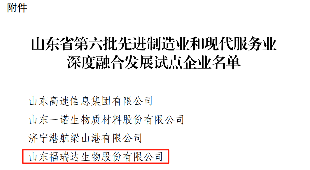 重磅!福瑞达生物股份入选山东省第六批“两业融合”试点企业