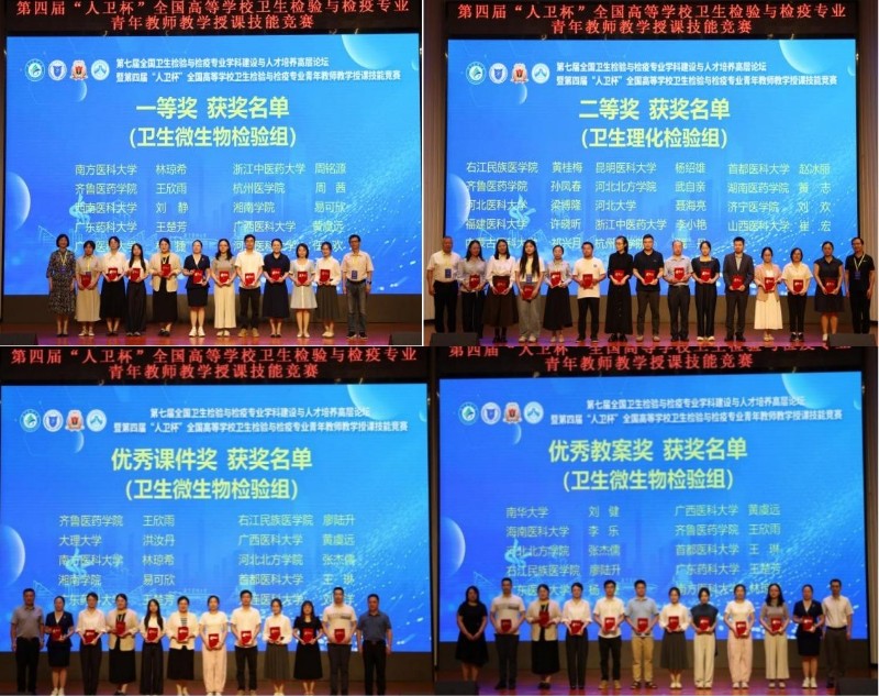 近日,第四届“人卫杯”全国高等学校卫生检验与检疫专业青年教师教学授课技能竞赛成功举办。齐鲁医药学院教师王欣雨荣获微生物检验组课堂教学授课一等奖,孙凤春获得理化检验组二等奖,两人均同获优秀课件奖和优秀教案奖。齐鲁医药学院医学检验学院荣获优秀组织奖。