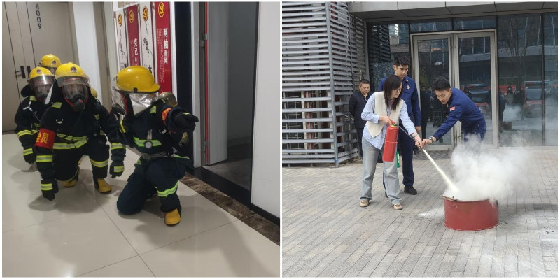 本次活动设置理论授课与实操演练两部分内容。在消防安全课堂上,济南市消防救援支队专家结合火灾事故案例,向大家生动揭示了工作和生活中存在的用火用电安全隐患,深入浅出地讲解了初期火灾处置、电动车充电注意事项及火场逃生自救等知识与技能。火灾逃生演练环节,随着模拟火情警报响起,物业人员迅速响应,手持红色指挥棒,引导楼内人员按照预定路线有序撤离。随后,消防队员讲解演示并指导参训人员学习灭火器及过滤式消防自救呼吸器的使用方法。