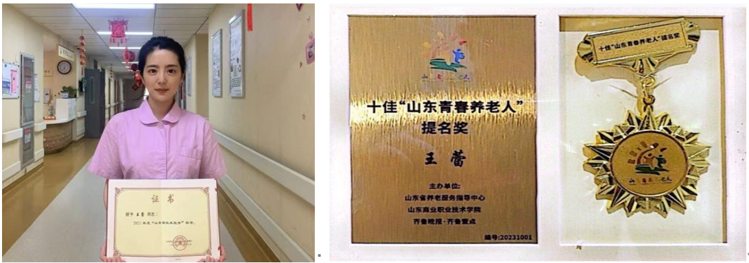 山东商职学院毕业生王蕾毕业后便投身养老行业,深深扎根基层,始终坚守工作一线,专注高龄、失能半失能长者的照护服务,将专业知识化为有温度的实践,从一名普通的养老护理员稳步成长为基层主管。凭借扎实的专业功底与精益求精的工匠精神,王蕾在多项职业技能竞赛中取得突出成绩,先后获评“山东省技术能手”“济南市最美养老护理员”“十佳山东青春养老人(提名奖)”等荣誉称号,并被认定为“济南市D类人才”,体现了过硬的专业素养与职业担当。